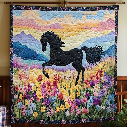 Black Horse In Flower WY1002019CL Quilt