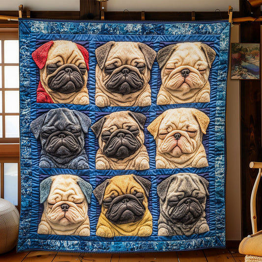 Sleeping Puppy Pugs WY1902099CL Quilt