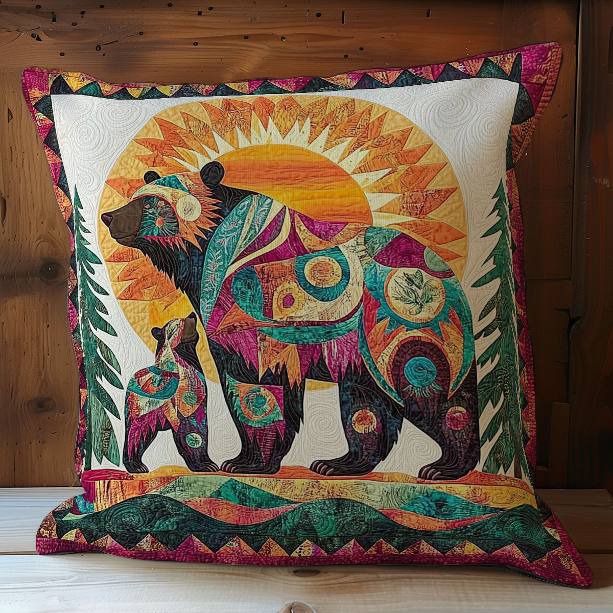 Bear Family In Forest WY1102006CL Quilt Pillow Case