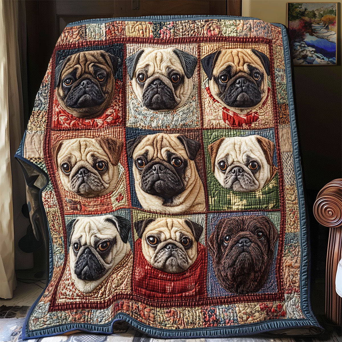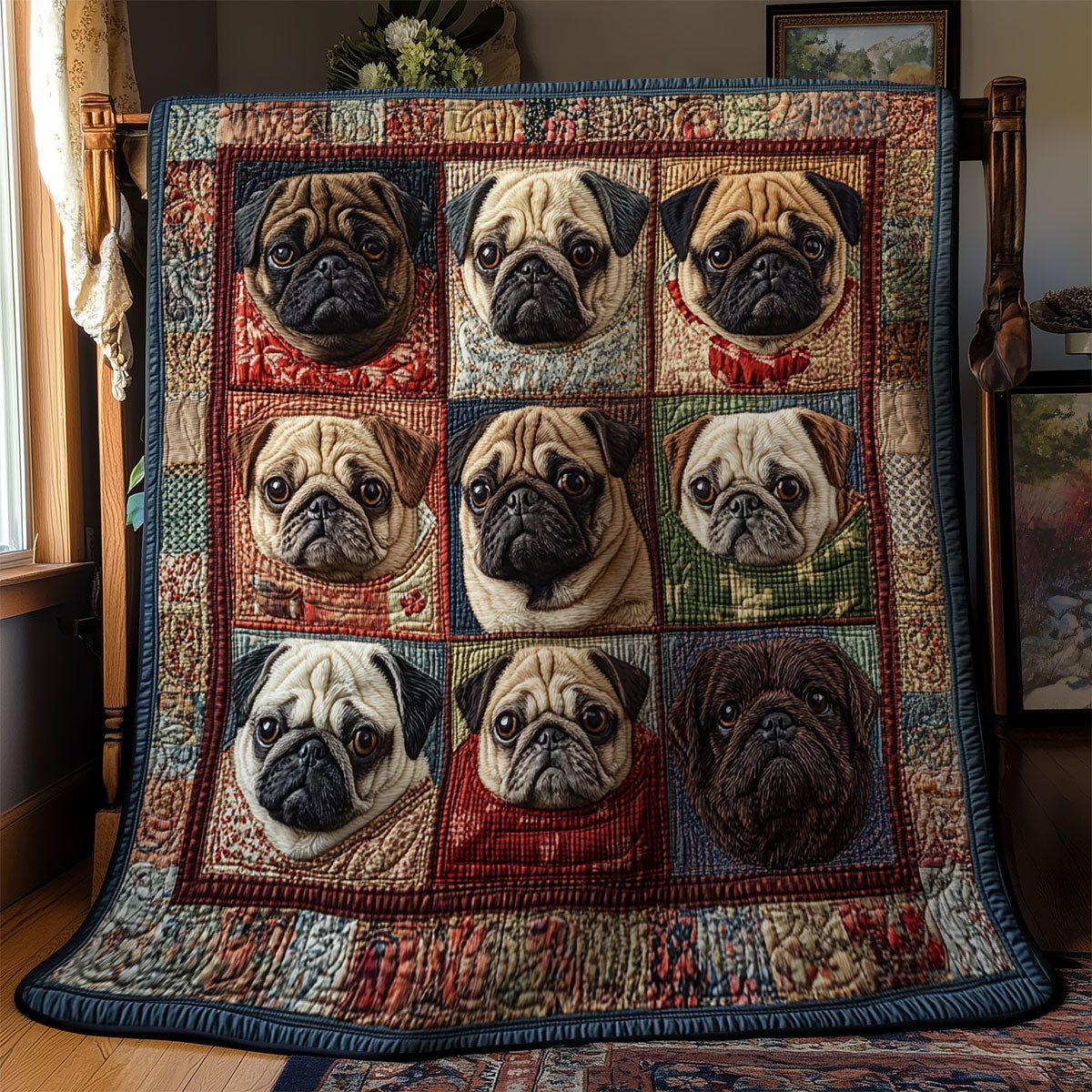 Charming Pug Portraits WY1203009CL Quilt
