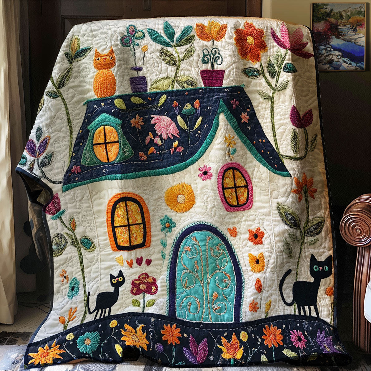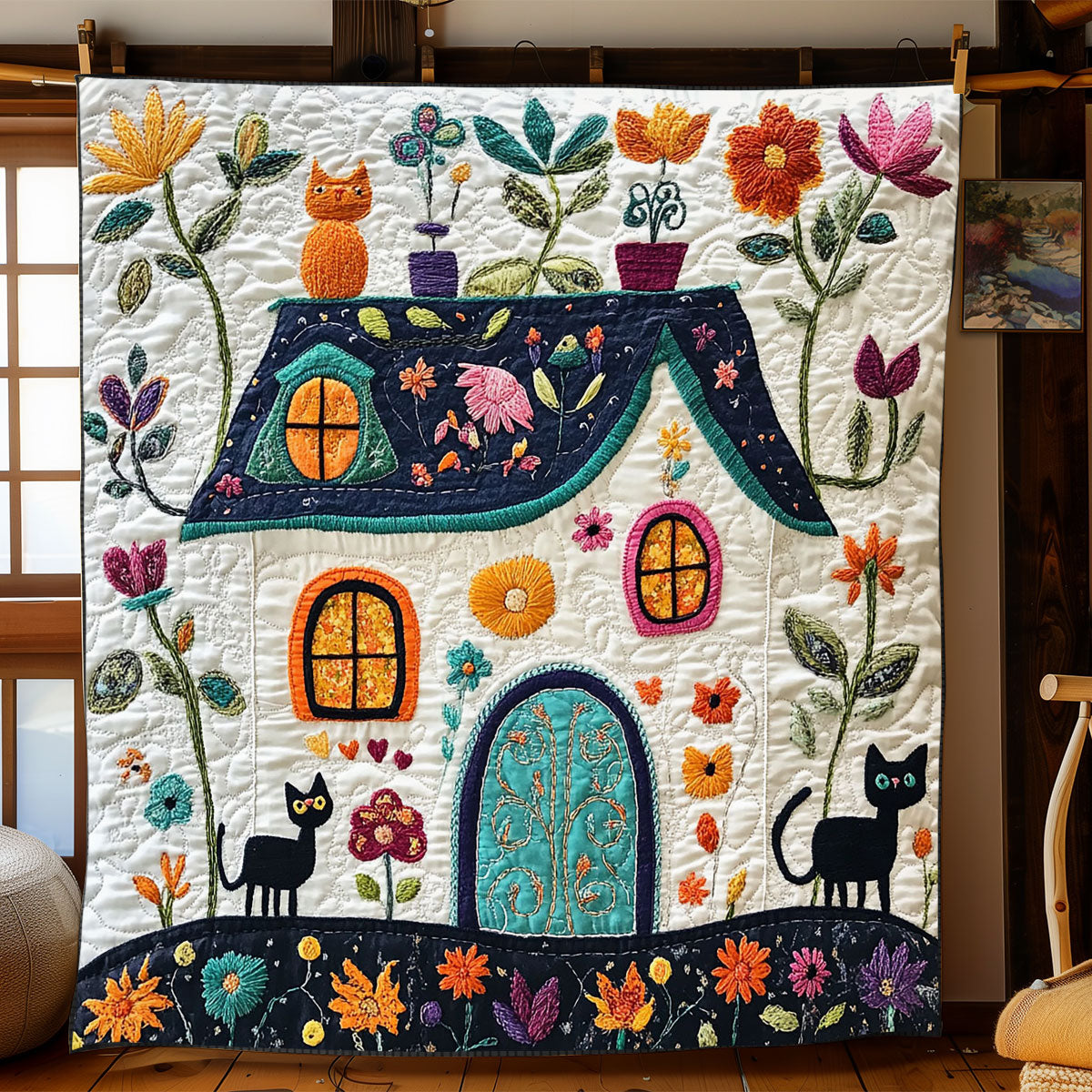 Cozy Cottage Cat WJ1702007CL Quilt