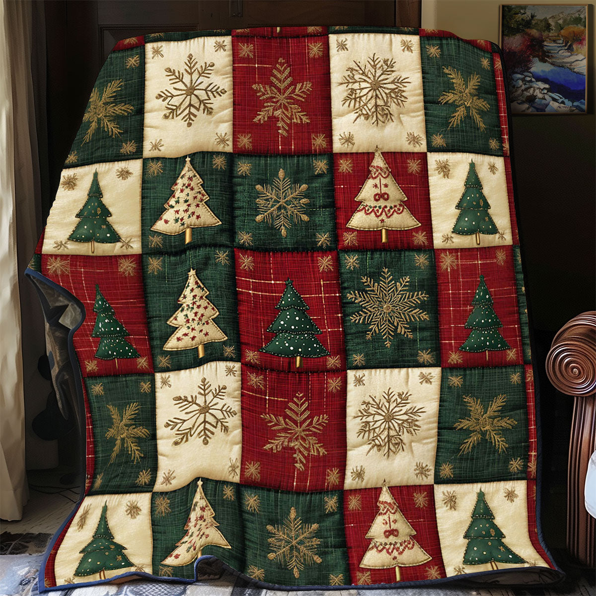 The patchwork quilted throw blanket has many different elements, reversible design, both sides can be used.