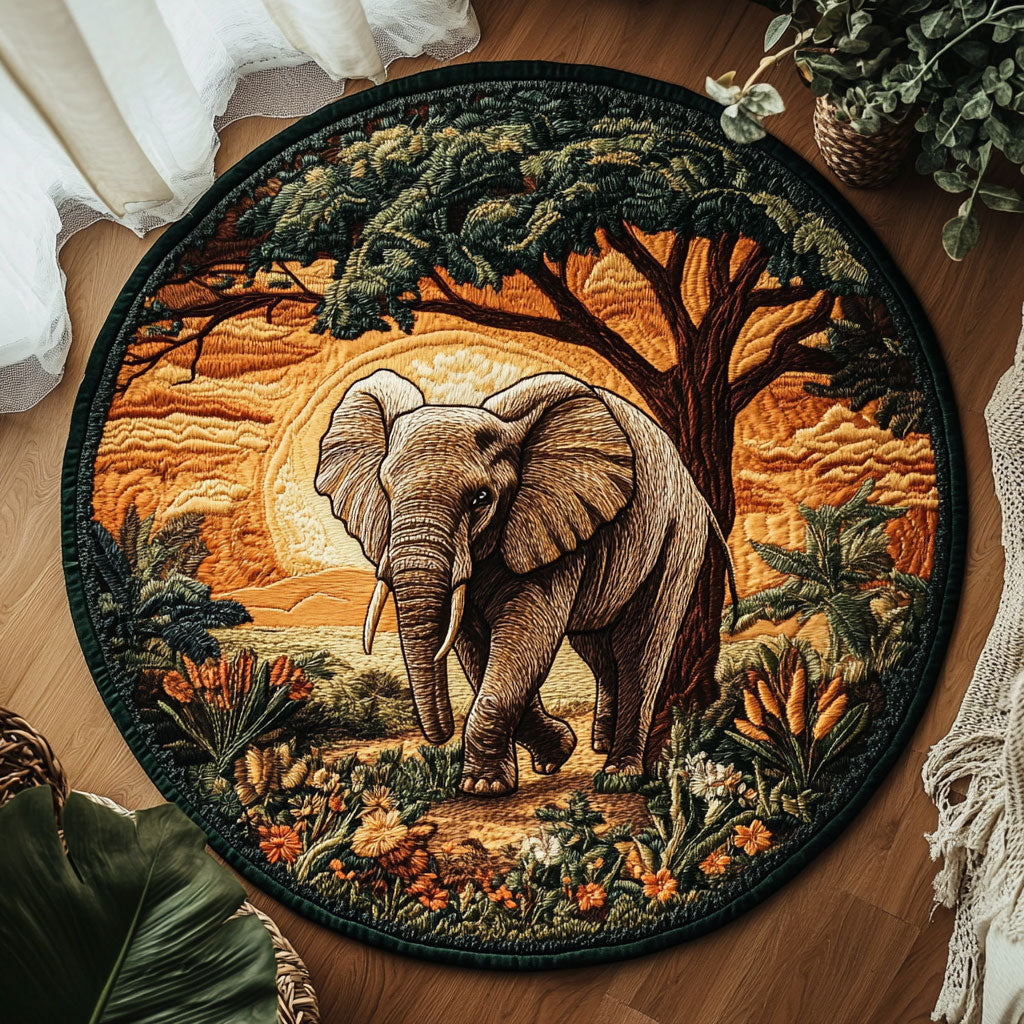 Elephant In Sahara WX1403121CL Quilted Round Mat