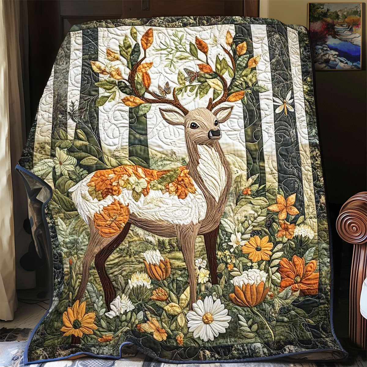 Floral Deer WP2001006CL Quilt