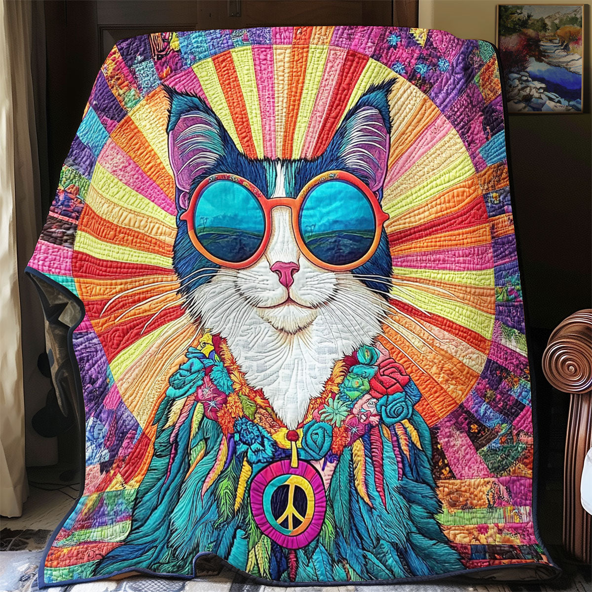 Hippie Cat Abstract WY0801031CL Quilt