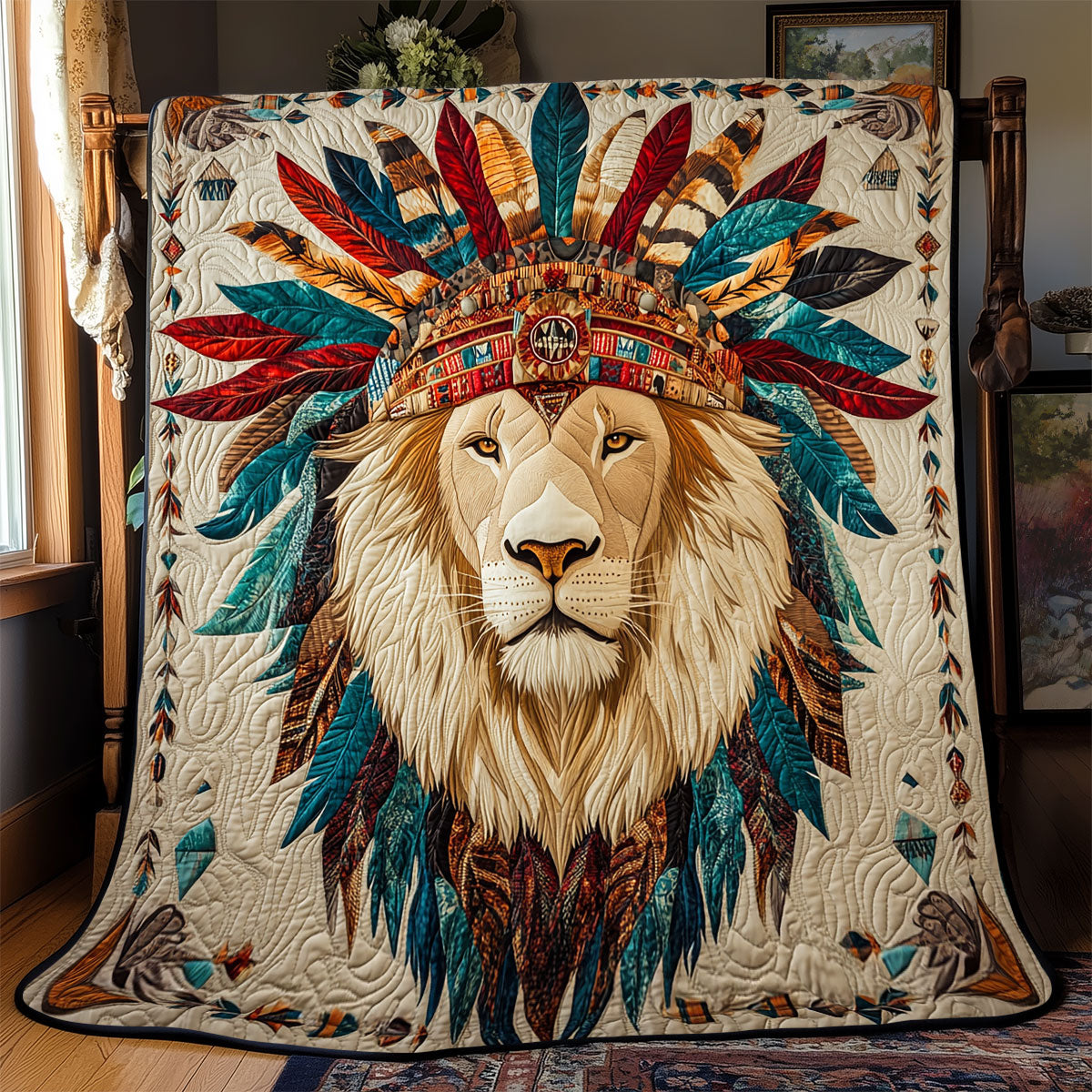 Lion Portrait Native American WX1003060CL Quilt