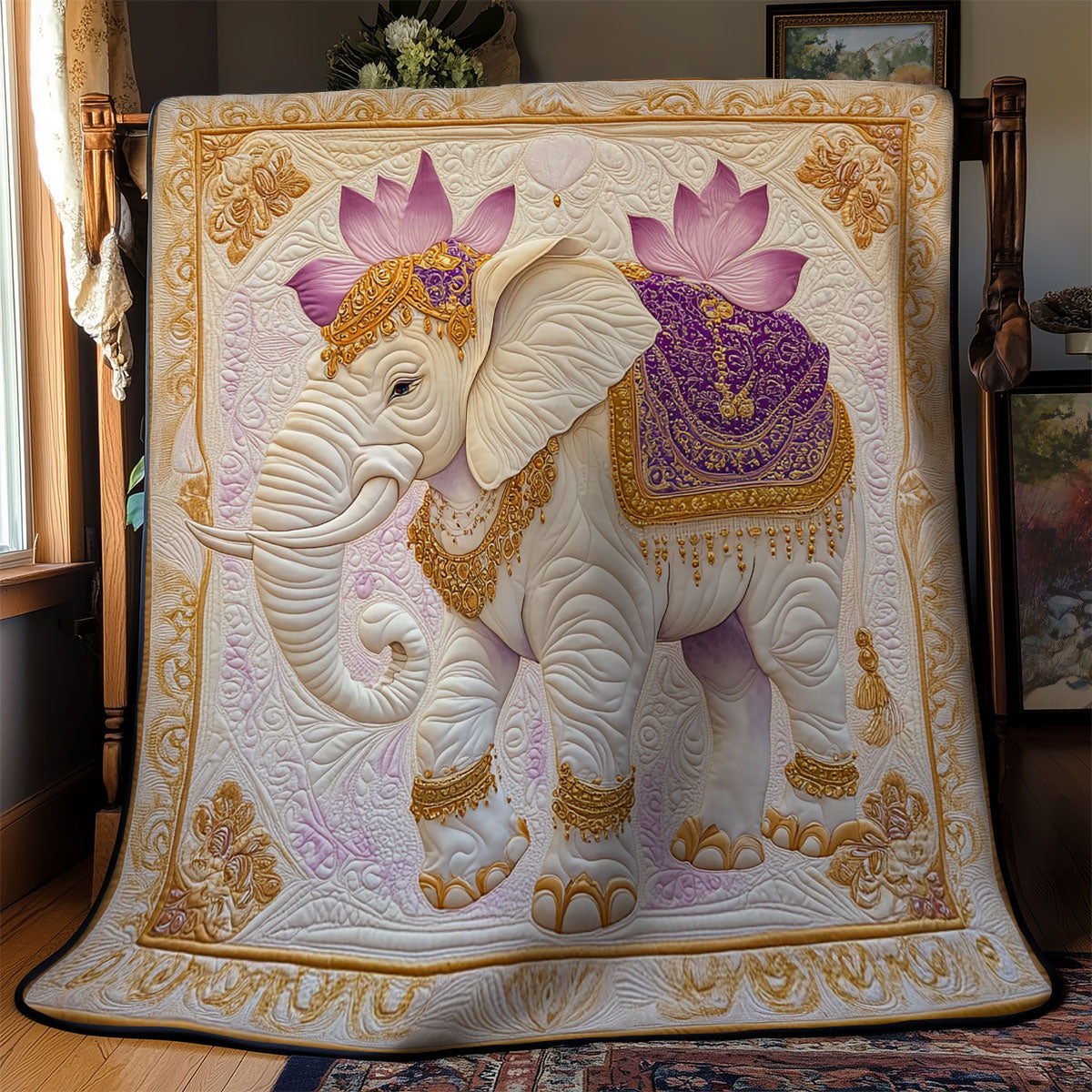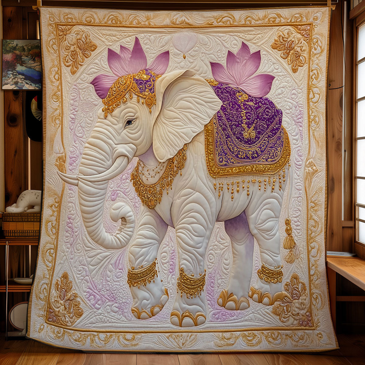 Lotus And Elephant WY1002096CL Quilt