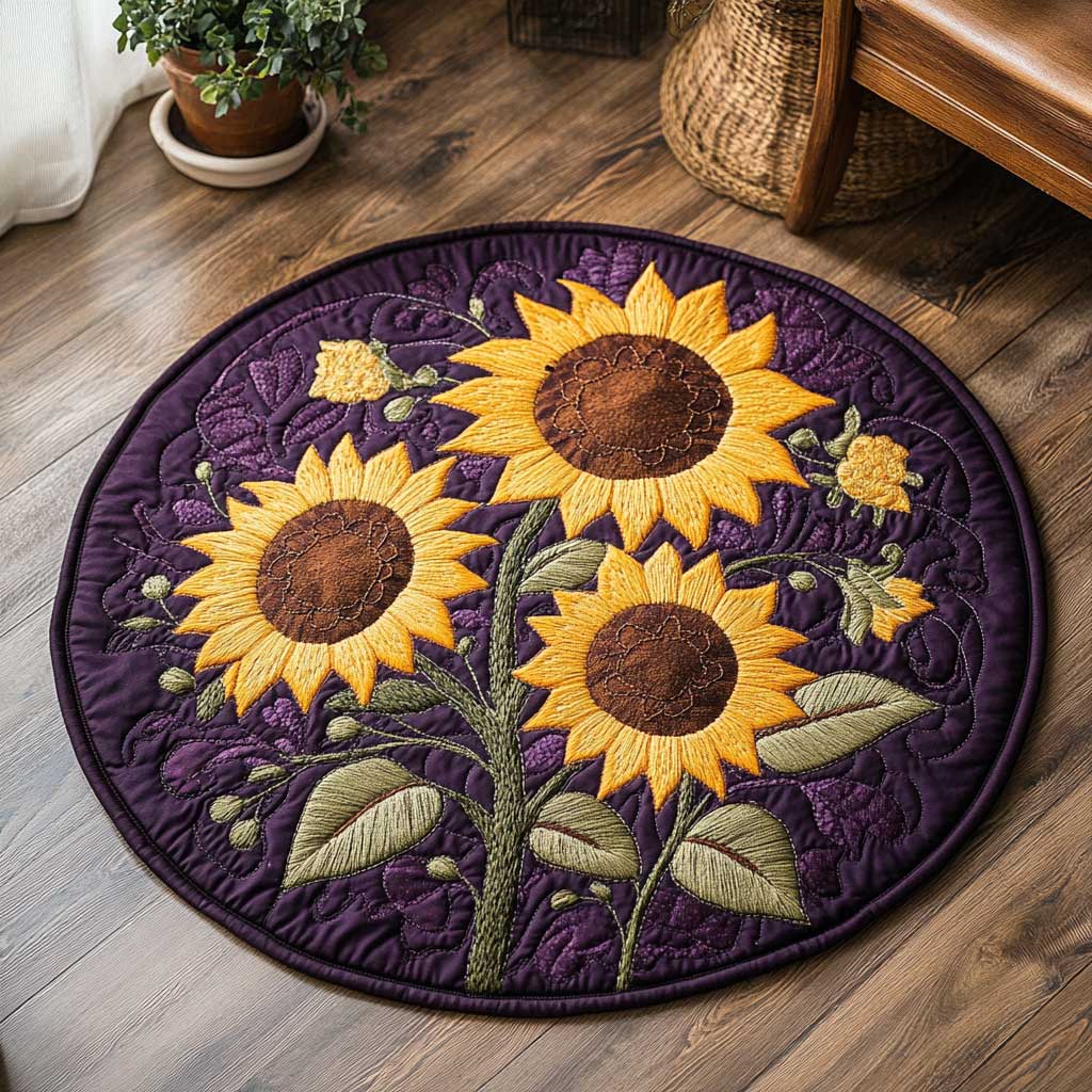 Midnight Sunflower WN1903110CL Quilted Round Mat