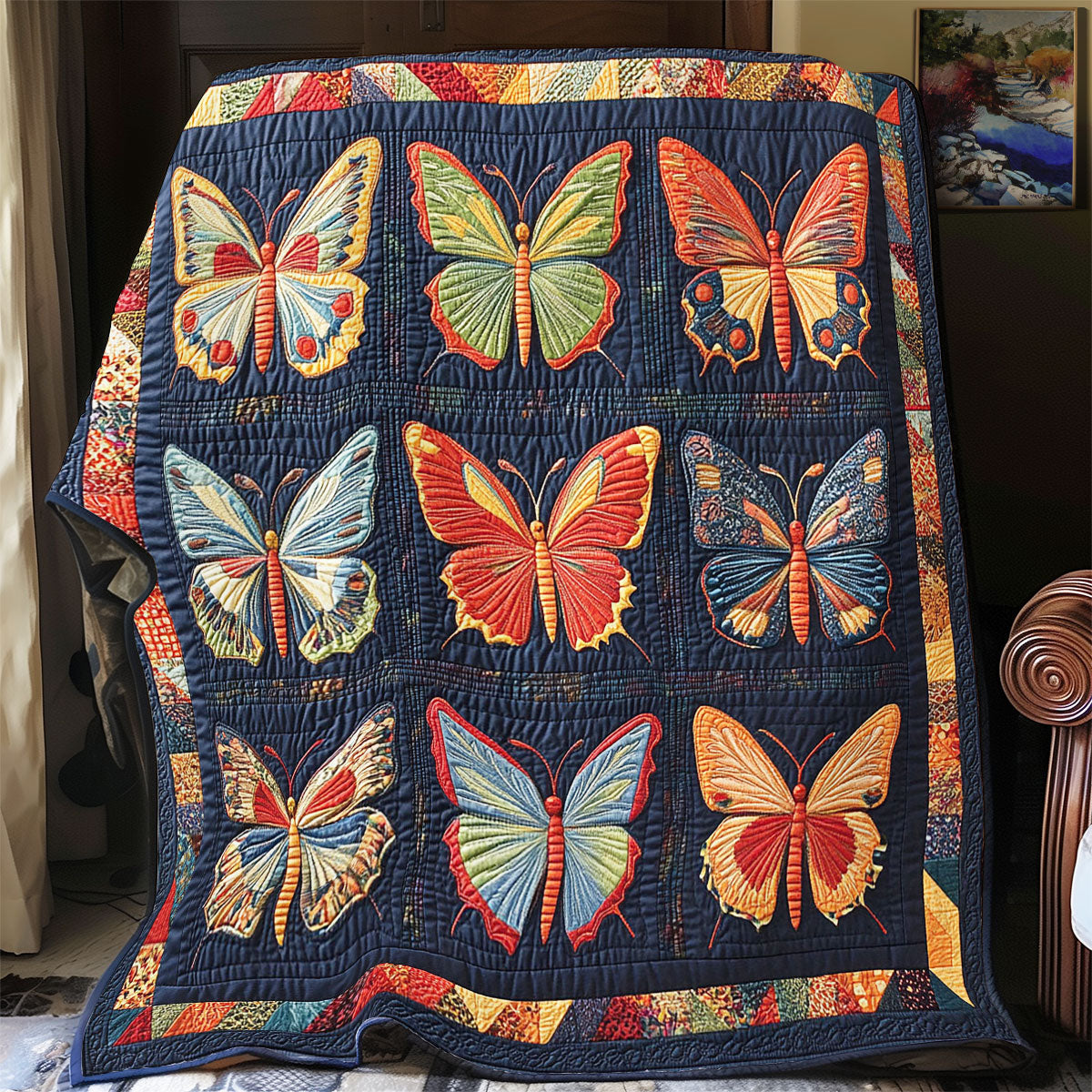 The patchwork quilted throw blanket has many different elements, reversible design, both sides can be used.