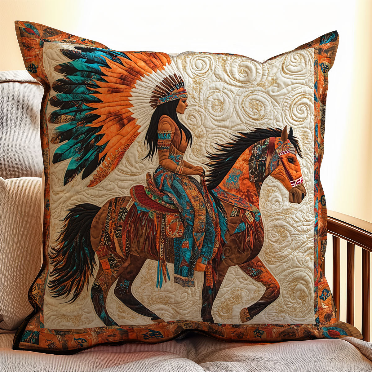 Nativer American Rider WX0302173CL Quilt Pillow Case