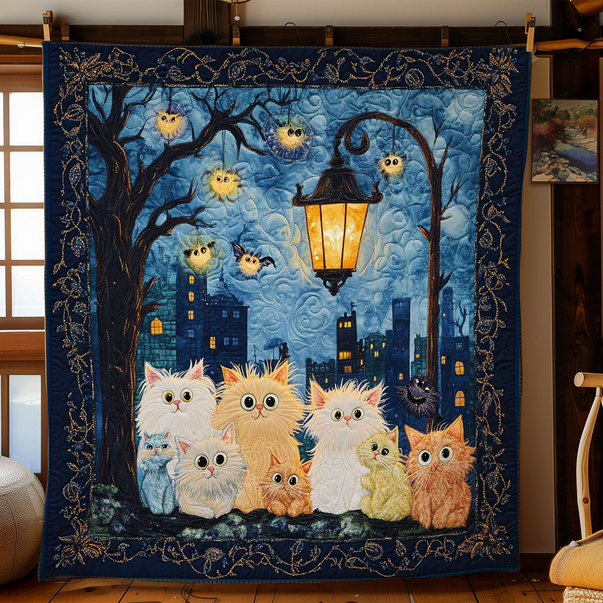 Silly Cat Spooky Night WN1103045CL Quilt
