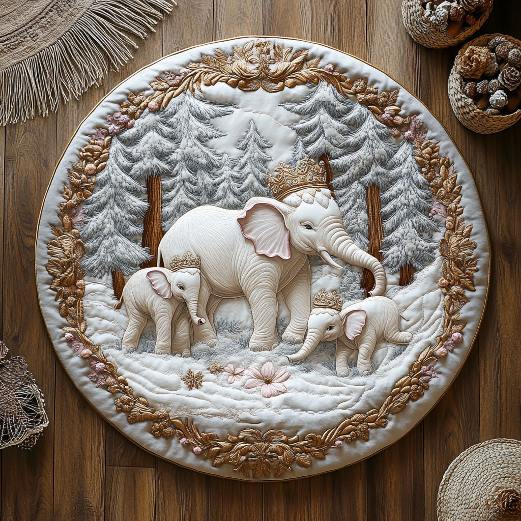 Snow White Elephant Family WY1006023CL Quilted Round Mat
