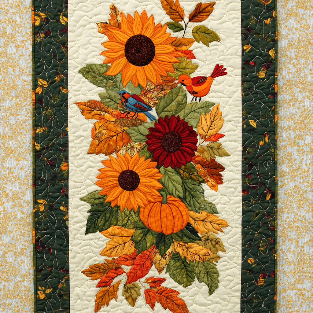 Sunflower And Bird WY0901142CL Quilted Table Runner