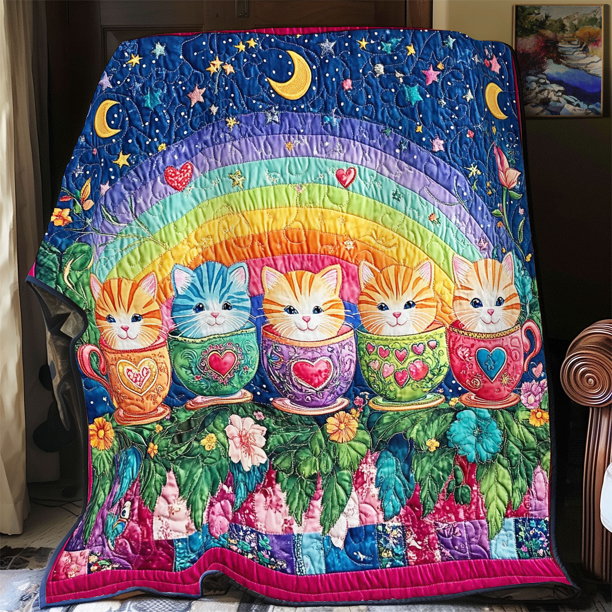 Teacup Kitten And Rainbow WY3112035CL Quilt