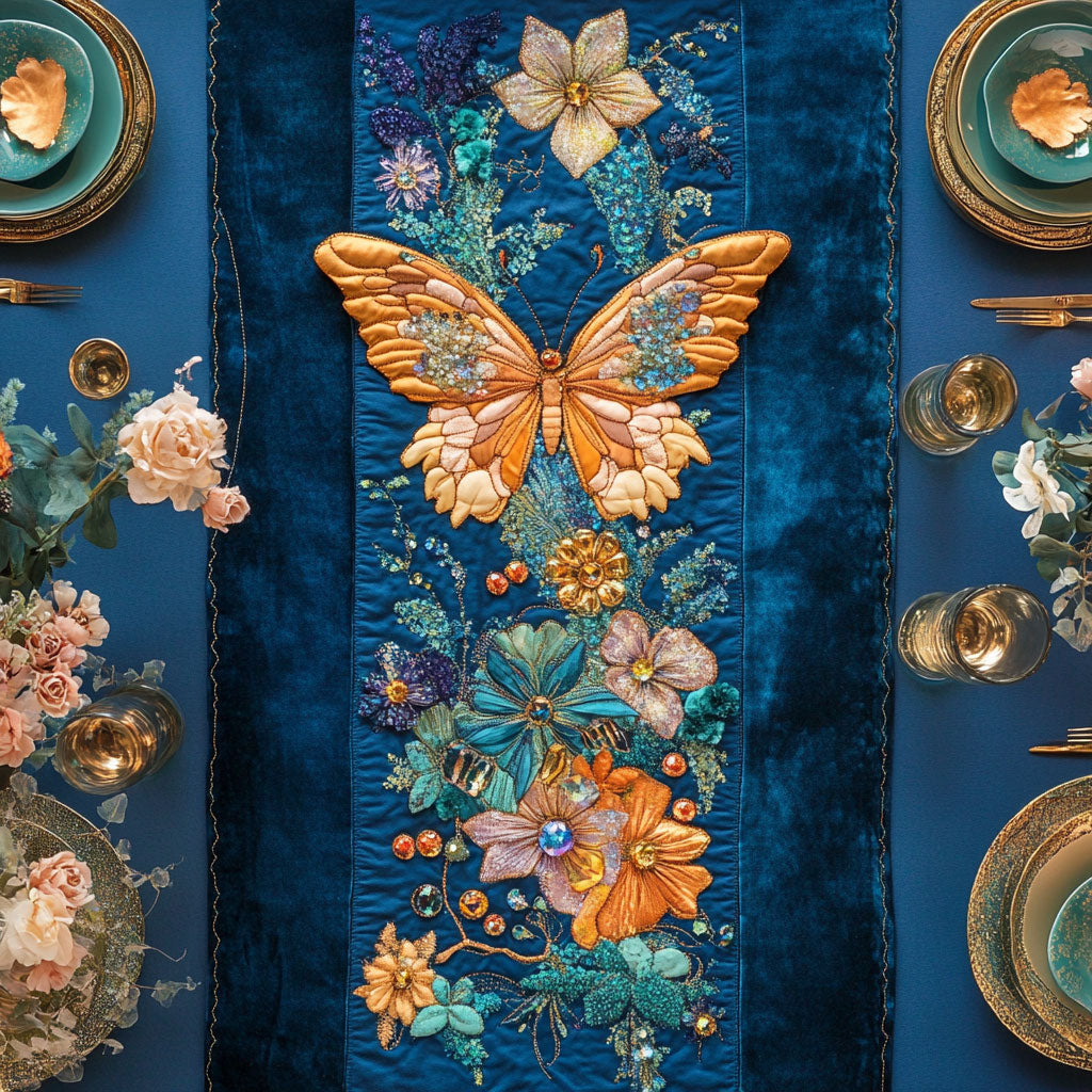 Whimsical Garden Butterfly WY0506055CL Quilted Table Runner
